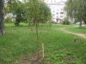 А ведь все саженцы имели колышки, и трава вокруг саженцев уже была окошена, по просьбе жителей, косарями управляющей компании, когда те окашивали траву во дворах домов.