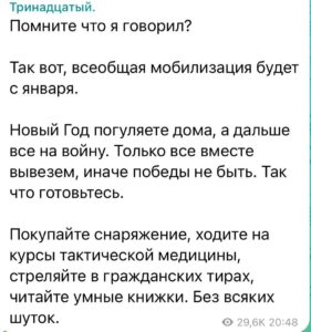 Владельцы каналов предупреждают, что полная мобилизация в стране может начаться уже с 1 января 2023 года.
