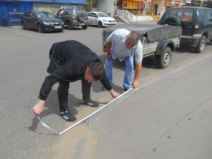 По данным участников рейда, при нормативе не более 14 мм высота бордюров на отдельных участках более чем в 10 раз выше – она достигает 15 см.