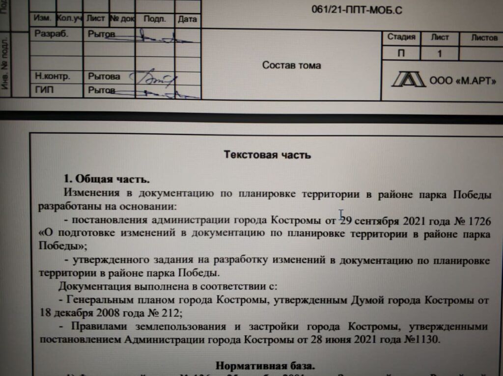 Общественники в Костроме направили жалобу в Генпрокуратуру на действия чиновников мэрии, которые изменили проект планировки территории городского парка Победы, отрезав от заповедного участка 6,3 га под строительство семи многоквартирных многоэтажных домов в пользу коммерческой компании депутата-единоросса.