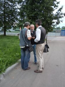 Помимо сотрудников в форме к журналисту подскочил одетый в штатское юрисконсульт УМВД Михаил Саватеев. Он заявил, что на митинге и разнервничавшаяся парочка, и он сам якобы были не при исполнении служебных обязанностей, а просто «гуляли в сквере», в котором проходил санкционированный митинг КПРФ.
