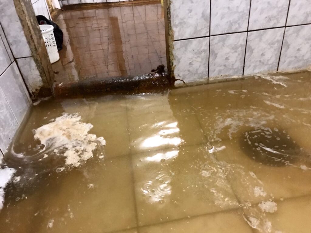 Отдельная проблема — душ, работающий только 4 дня в неделю. Причем из-за засора канализации в душевых комнатах вода не уходит и моющиеся вынуждены стоять по щиколотку в грязной воде. Информацию об этом студенты подтверждают размещенными жуткими фотографиями.